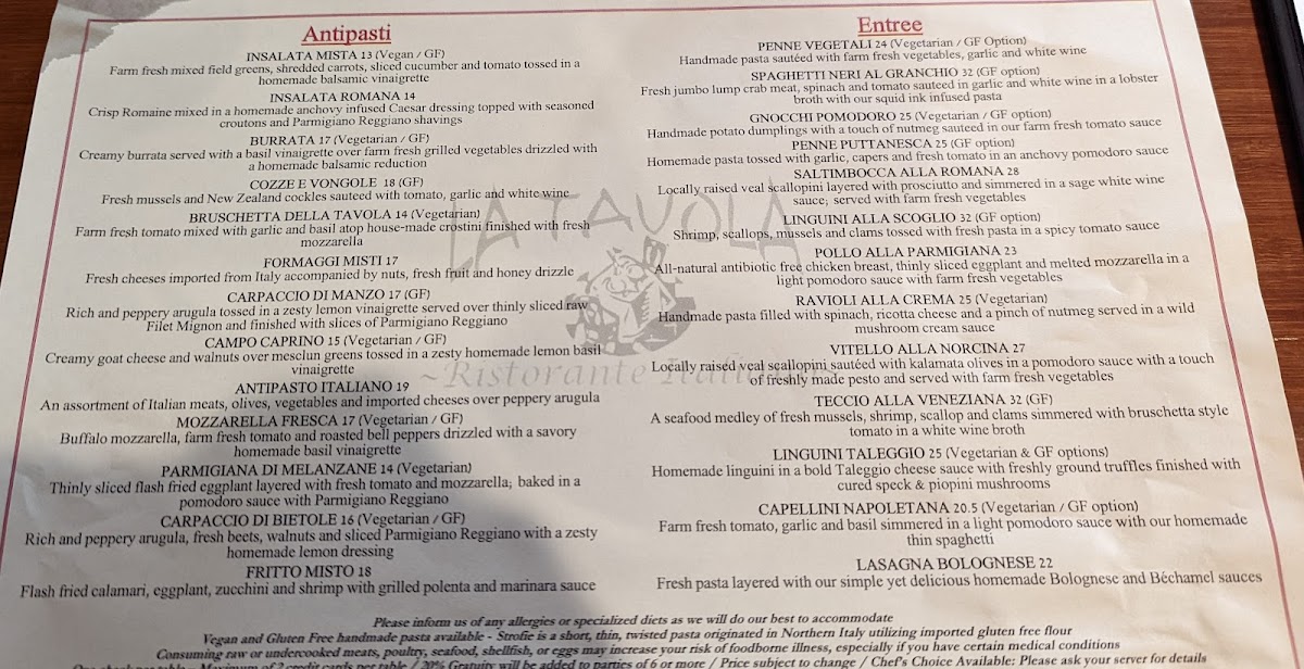 Welcome to La Tavola, a charming Italian restaurant nestled in the heart of Baltimore's Little Italy. This eatery is a true ode to authentic Italian cuisine, offering a menu that tantalizes the senses with its vibrant flavors and fresh ingredients. The moment you step inside, you're enveloped by an atmosphere that beautifully balances elegant charm with a relaxed ambiance, making it the perfect spot for both intimate dinners and celebratory gatherings.